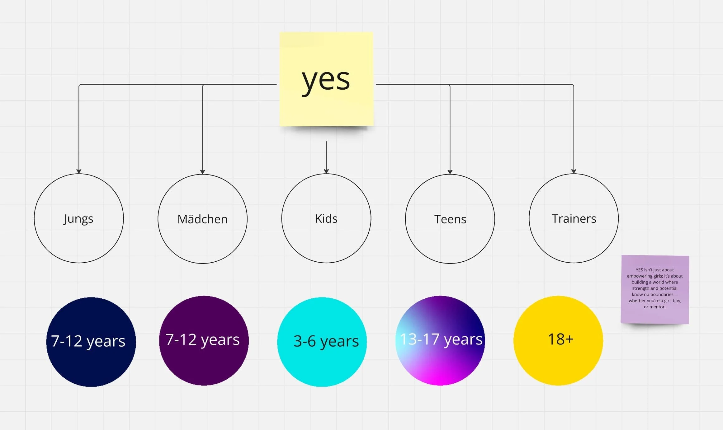 This concept for Y.E.S. Starke Mädchen explores a more inclusive brand structure, introducing sections for children, teenagers, boys, and coaches to provide targeted support. A modernized logo and visual identity aim to unify all subcategories and ensure consistency across digital and print platforms, reflecting the organization’s inclusive mission.